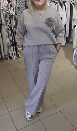 Wyprzedaż 70% Zniżki🔥🔥🔥Dwuczęściowy komplet składający się z dzianinowej bluzki i szerokich spodni