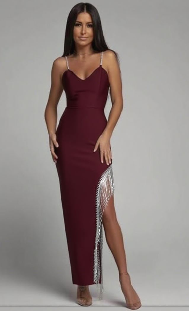 Piękna, długa suknia wieczorowa o kobiecych kształtach. Model ma efektowny dekolt z tyłu. Zapoznaj się z naszą ofertą sukienek i wybierz tę, w której będziesz wyglądać jak gwiazda i wyróżnić się z tłumu. Sukienka ma wszyte miseczki z przodu, dzięki czemu nie musisz nosić biustonosza. Rozcięcie z boku dodaje jej seksapilu. Sukienka na srebrnych ramiączkach. Wykonana z wysokiej jakości materiału. Idealna na ważne wyjścia. Dopasowany krój dodaje sukience klasy i elegancji. Idealna dla kobiet ceniących styl i wygodę!