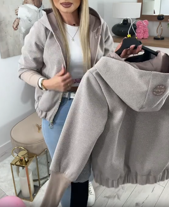 Super rabat -69%‼️‼️Kurtka z kapturem i długimi, prążkowanymi rękawami