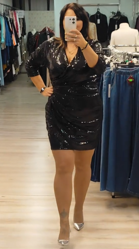 Sukienka z gęstą, blaskową teksturą i subtelnym, zwinięciem