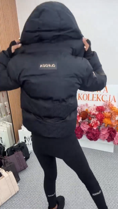 Damska, swobodna, monochromatyczna kurtka puchowa z kapturem i zamkiem błyskawicznym