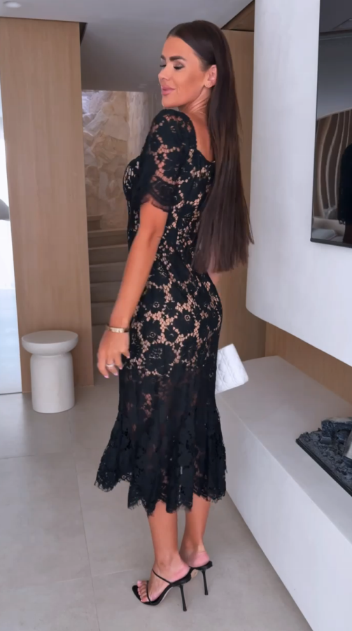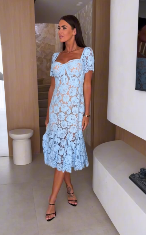 Sukienka z koronką i kwadratowym dekoltem typu rybi ogon