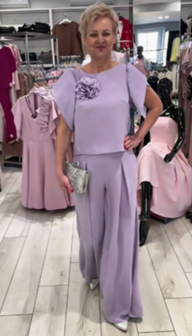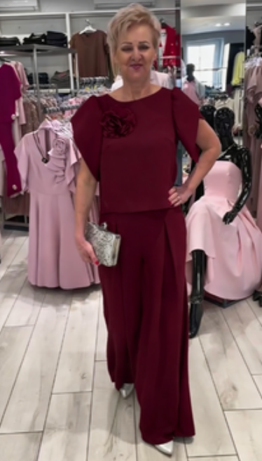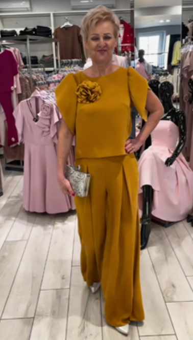 Dwuczęściowy krój: Ten strój składa się z bluzy z krótkim rękawem i szerokich spodni, tworząc elegancki i stylowy look.
