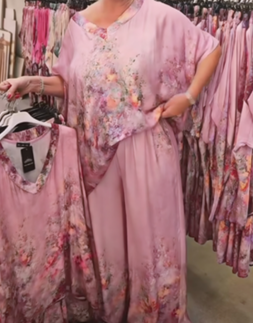 Dwuczęściowy komplet z nadrukiem tie-dye | Bluzka z rękawami typu nietoperz + spodnie z szerokimi nogawkami