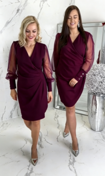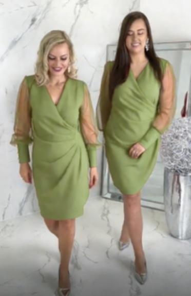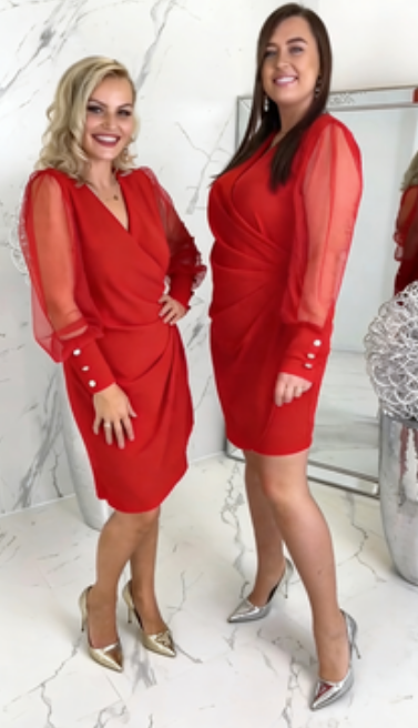 🌟Wyprzedaż sezonowa!🌟 Sukienka z przezroczystymi rękawami i dekoltem w serek
