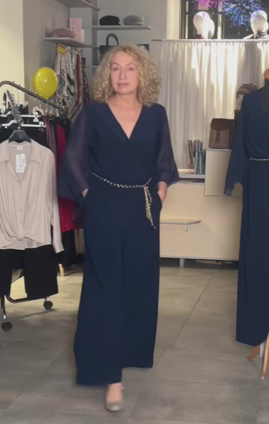 Prezentujemy ten klasyczny damski kombinezon – połączenie luksusowego materiału i dopasowanego kroju, idealny dla kobiet ceniących wygodę i elegancję. Ten model to coś więcej niż tylko element garderoby: to symbol nowoczesnego stylu, który zapewni Ci profesjonalny i wyrafinowany wygląd na każdym wyjściu lub spotkaniu. Z półprzezroczystymi rękawami i paskiem z łańcuszka, zapewnia swobodę ruchów i niepowtarzalną sylwetkę. Granatowy odcień dodaje uroku, a uniwersalny fason sprawia, że nadaje się na wiele okazji – od spotkań biznesowych po wieczorne wyjścia.