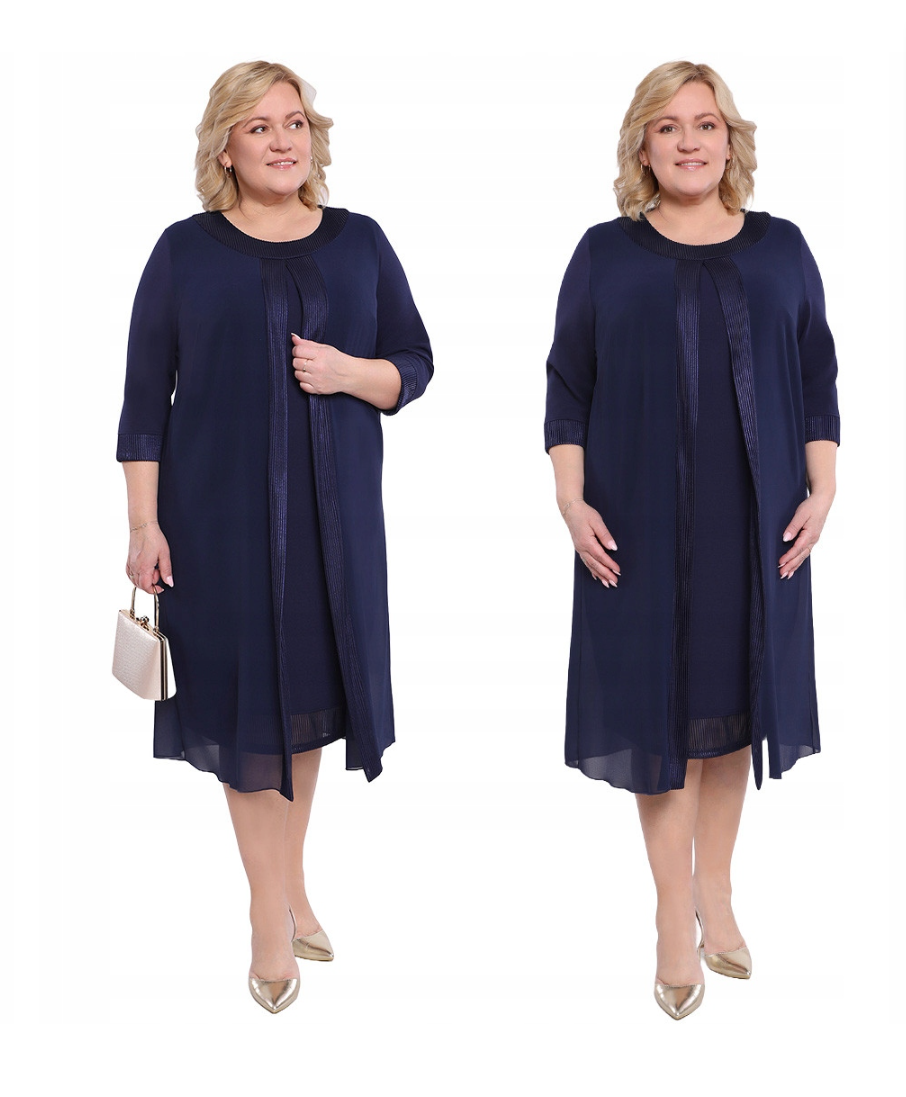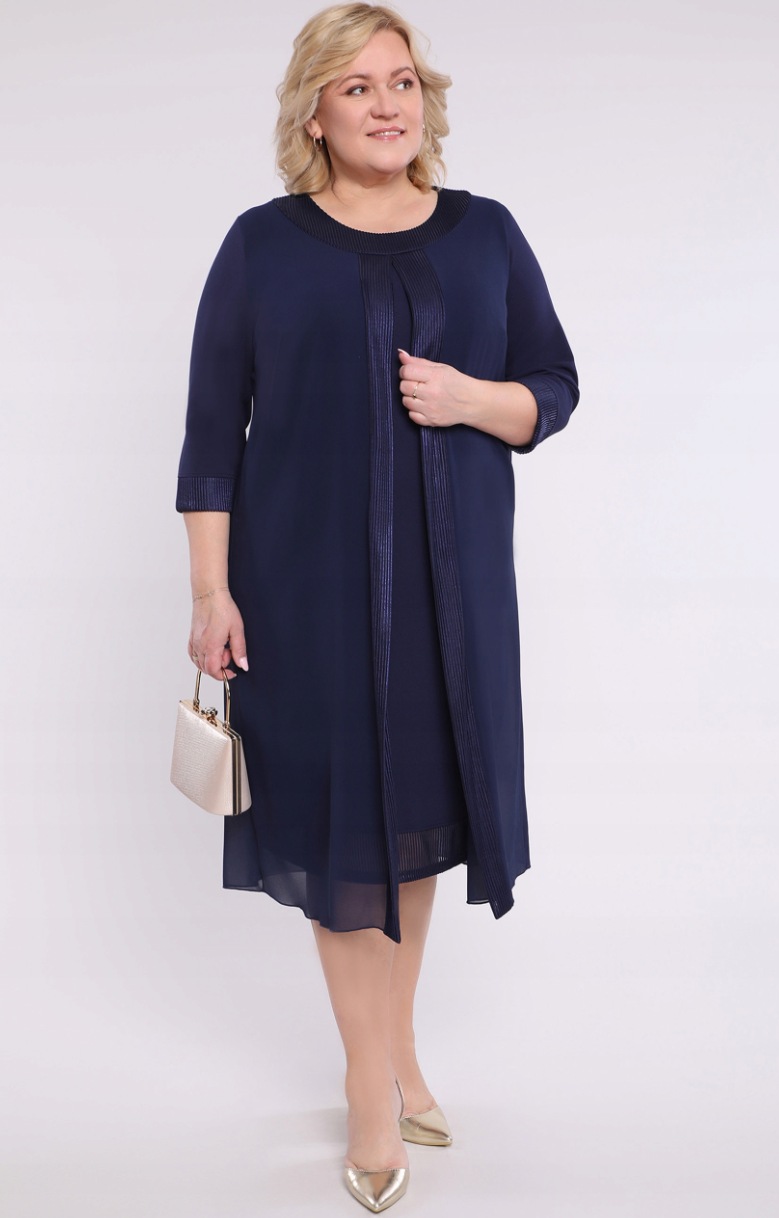 Damska, swobodna i elegancka sukienka w jednolitym kolorze z okrągłym dekoltem.