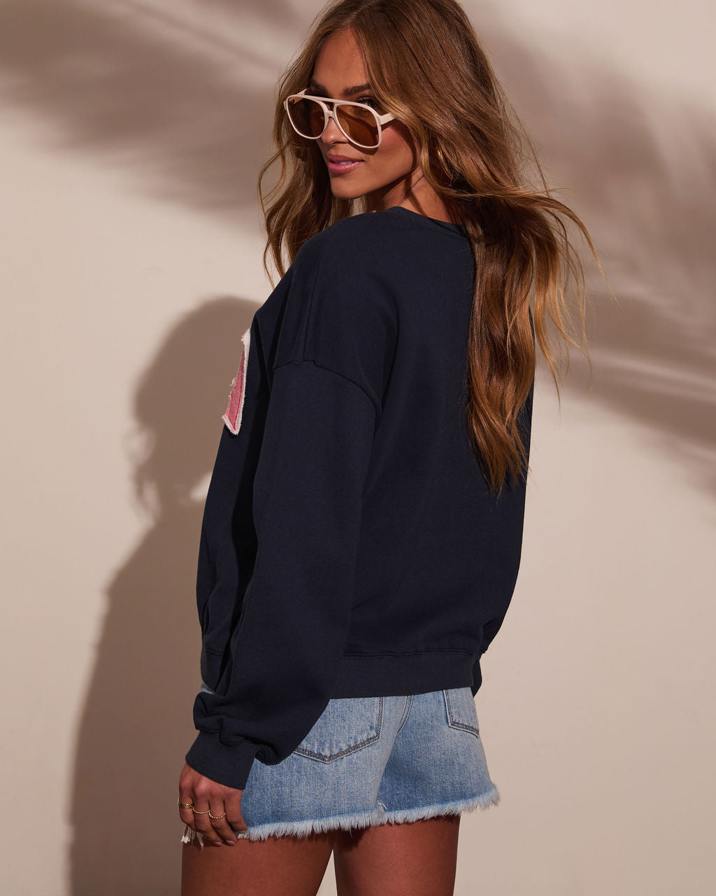 Throw it on, roll out, and rep the stars and stripes in a way that feels fresh, feminine, and forever cool in the USA Graphic Pullover Sweatshirt. With its perfectly broken-in feel and effortlessly cool energy, this pullover made from soft, midweight jersey brings laid-back Americana charm with a modern twist. The embroidered USA logo pops with frayed-edge detail for a touch of vintage edge, while ribbed trims at the neckline, cuffs, and hem keep the look sharp. Midweight jersey fabric